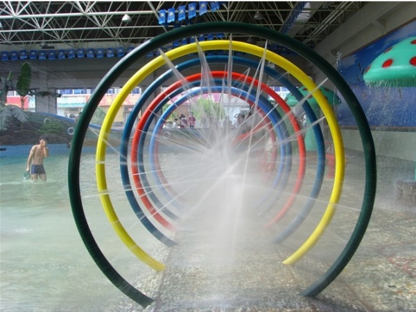 戲水設備七彩圈LT-QCQ17098是浪騰公司設計師們觀看天空彩虹觸發靈感而研發設計的一款適合兒童戲水游樂和親子教育的戲水小品。七條彩虹七個顏色,猶如那七個生活調味——酸甜苦辣醬醋茶。每一個都與我們息息相關。并且七彩圈造型像彩虹,對小朋友是非常有吸引力的。因此,也特別適合作為兒童水上樂園的一種戲水項目。一家人一起玩,還能有親情教育的作用。邊玩邊教邊感受,同時也可以跟周圍其他戲水小品共同組成樂園景觀點綴!