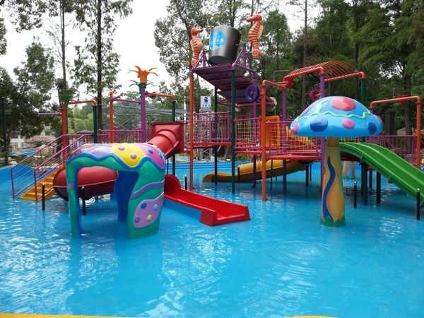 水上樂(lè)園設(shè)備小型兒童水屋LT-SW1702是以海洋動(dòng)感生物為主題的小型兒童互動(dòng)水上城堡,占地面積約200平方米,高7.5米,有兩道封閉滑梯和一道小雙道滑梯,有趣味大翻桶、風(fēng)水輪、旋轉(zhuǎn)托盤、疊流盤組合、方形漏斗、方向盤式控水閥、孔雀式噴水、攀爬網(wǎng)等趣味戲水項(xiàng)目。非常好玩,有趣!