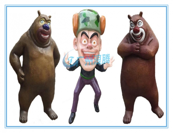 水上樂園設備戲水小品組合LT-XP102根據動畫片“熊出沒”里面的動畫人物熊大熊二和光頭強作為原型,整體造型設計的惟妙惟肖,還原了原版動畫里面的精髓。
