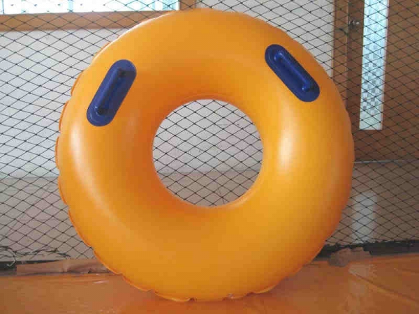 單人皮筏,皮筏本體采用PVC材料,高周波機(jī)壓熱合連接。要求連接部份去除多余材料,不得有漏氣現(xiàn)象。直徑1000mm
